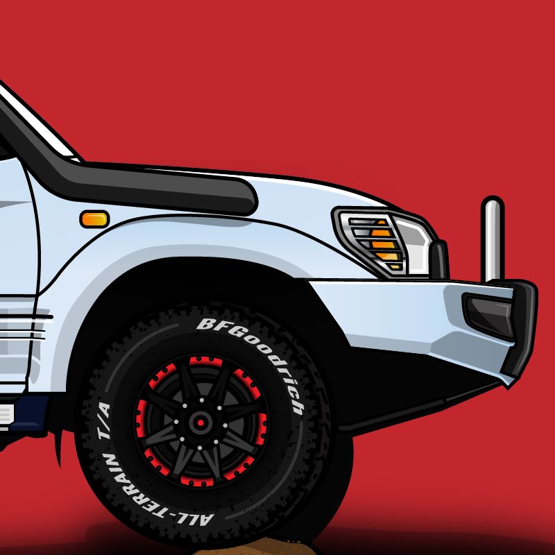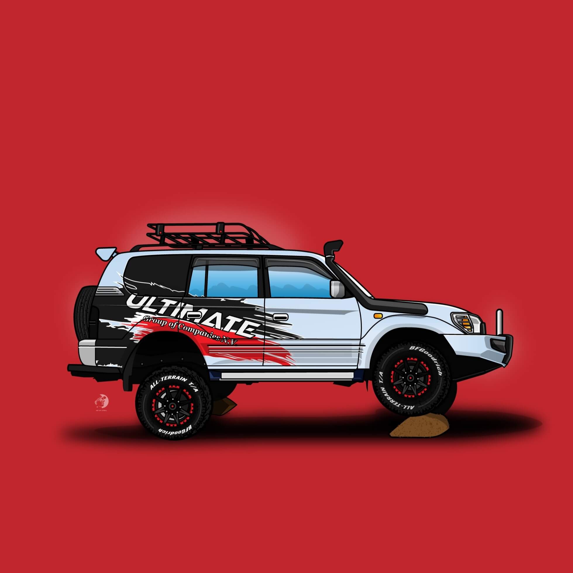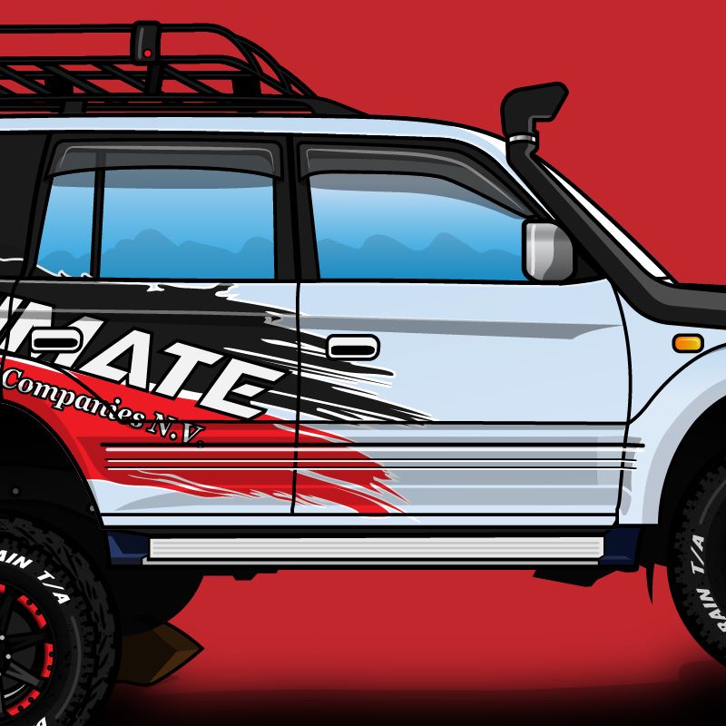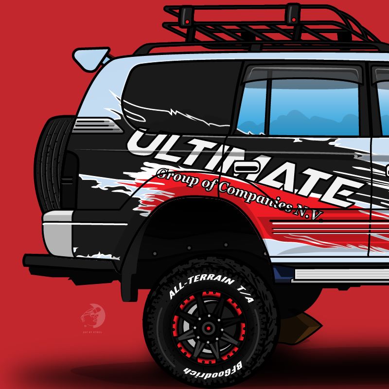Dit illustratieproject had als thema een Toyota Prado rallyauto, die eigendom is van een familielid van de klant. Het proces begon met het verzamelen van referentiemateriaal van de Toyota Prado rallyauto en het bespreken van de specifieke details en kenmerken met de klant.