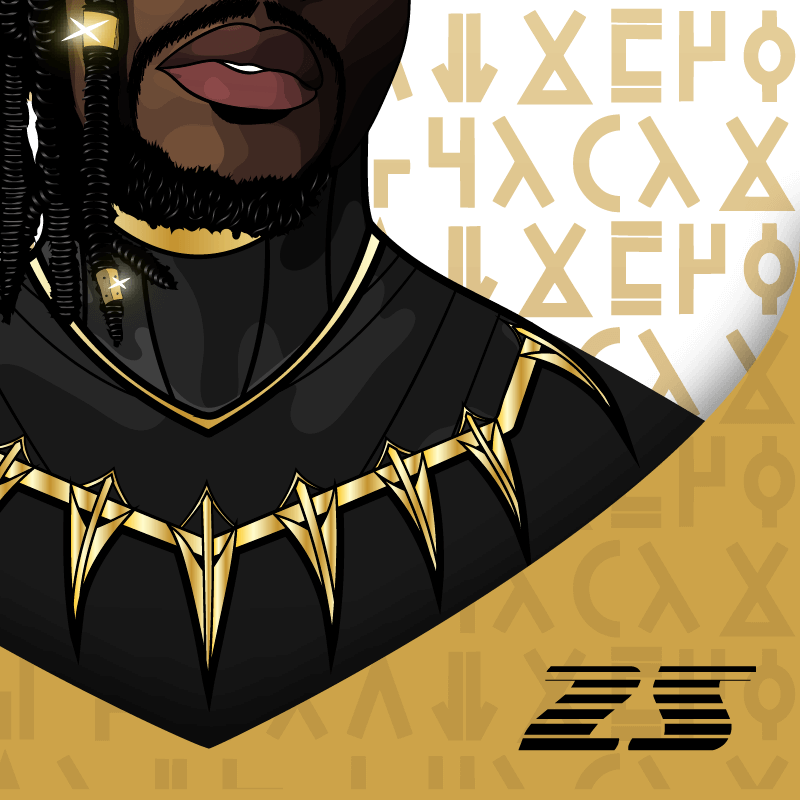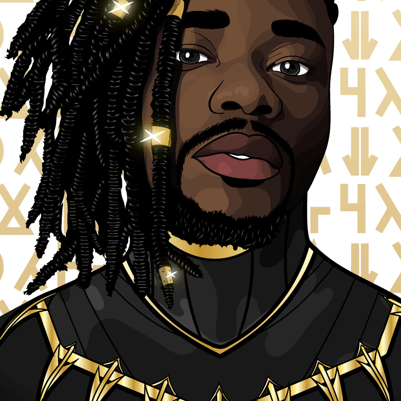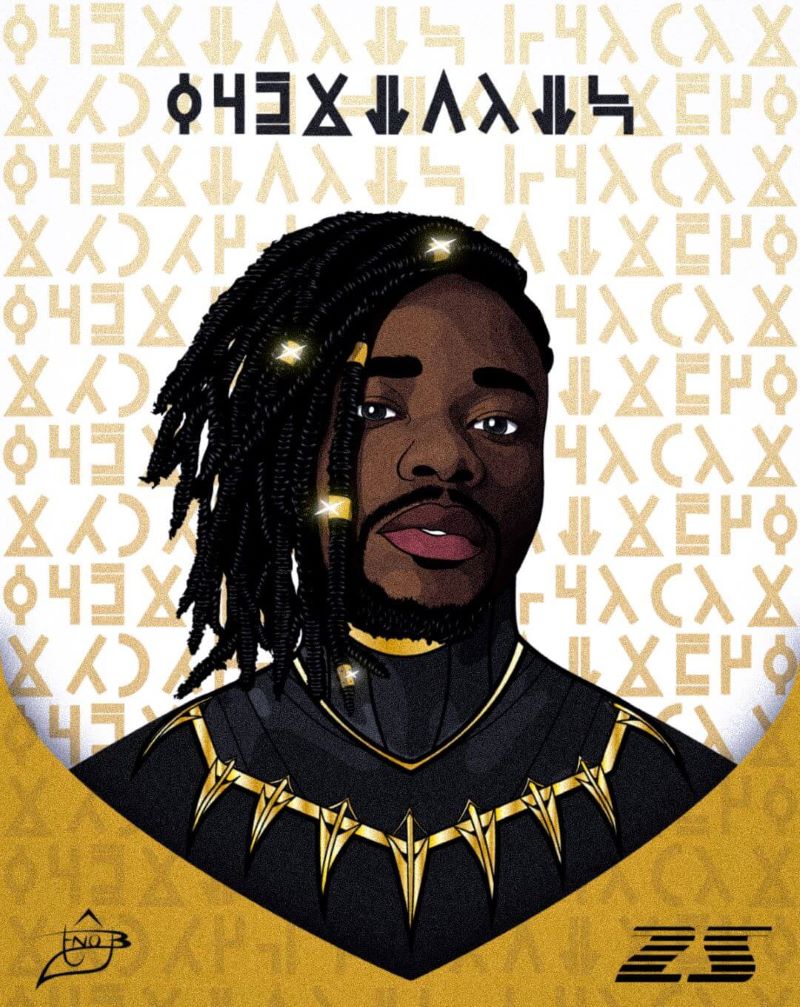 Een custom-made digitale portrait in de stijl van de karikatuur “Black Panther”. In het Xhosa staat de naam van de persoon die is uitgebeeld (Falentino) in deze illustratie. De welbekende tekenaar onder de artiesten naam “TNO- Dékra” op Facebook.