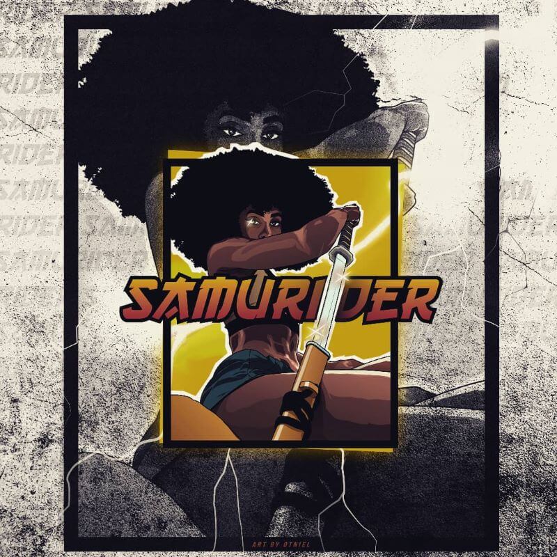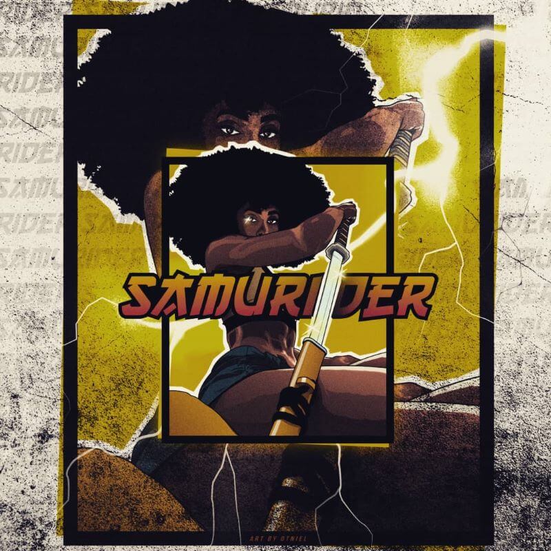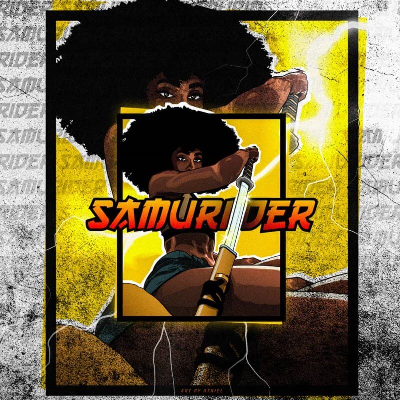 Deze digitale illustratie van Shaina West als de “Samurider” is een illustratie die de indrukwekkende talenten van deze martial arts-kunstenaar en actrice tot uiting brengt.